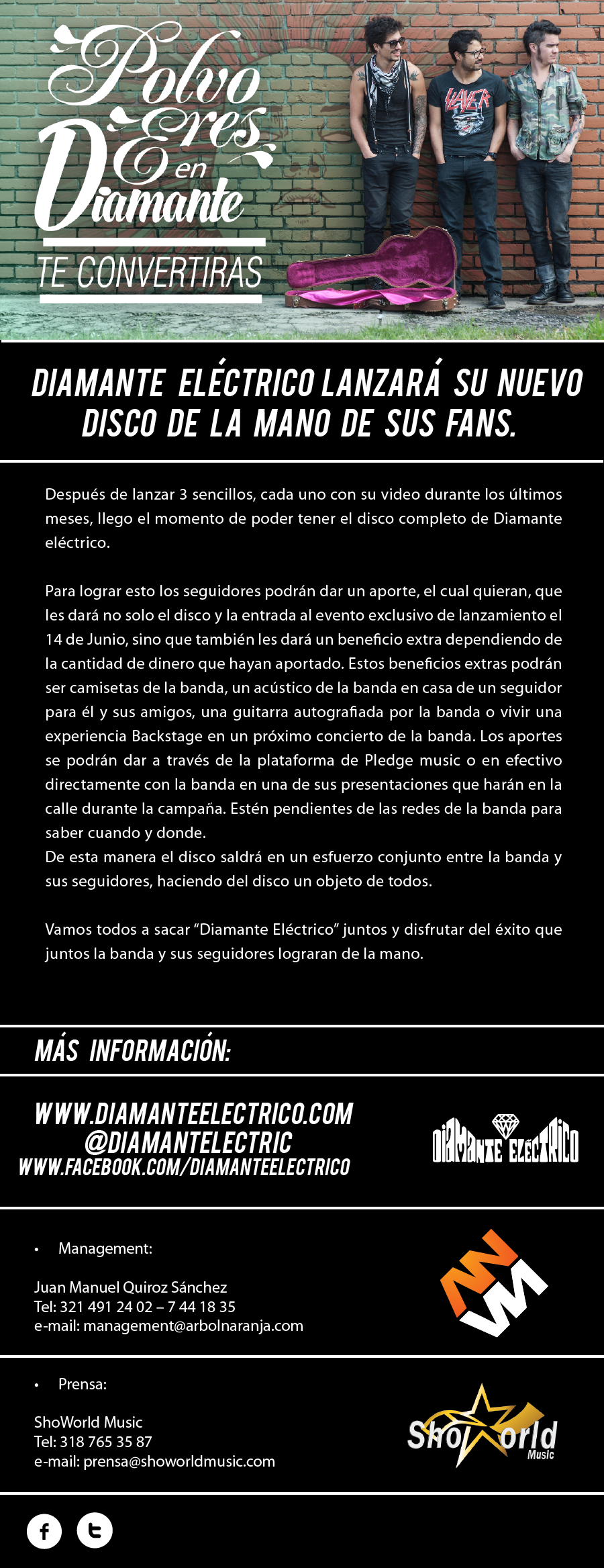 Vamos todos a sacar “Diamante Eléctrico” juntos y disfrutar del éxito que juntos la banda y sus seguidores lograran de la mano.